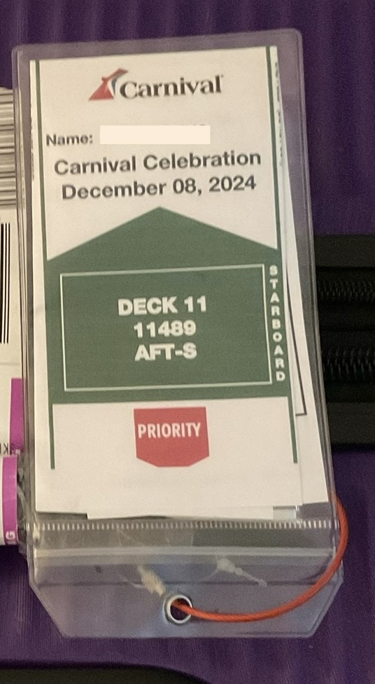 - Tag Details: Each tag includes your name, cabin number, and often a color code for deck identification. If you have priority boarding, it will be noted as well.