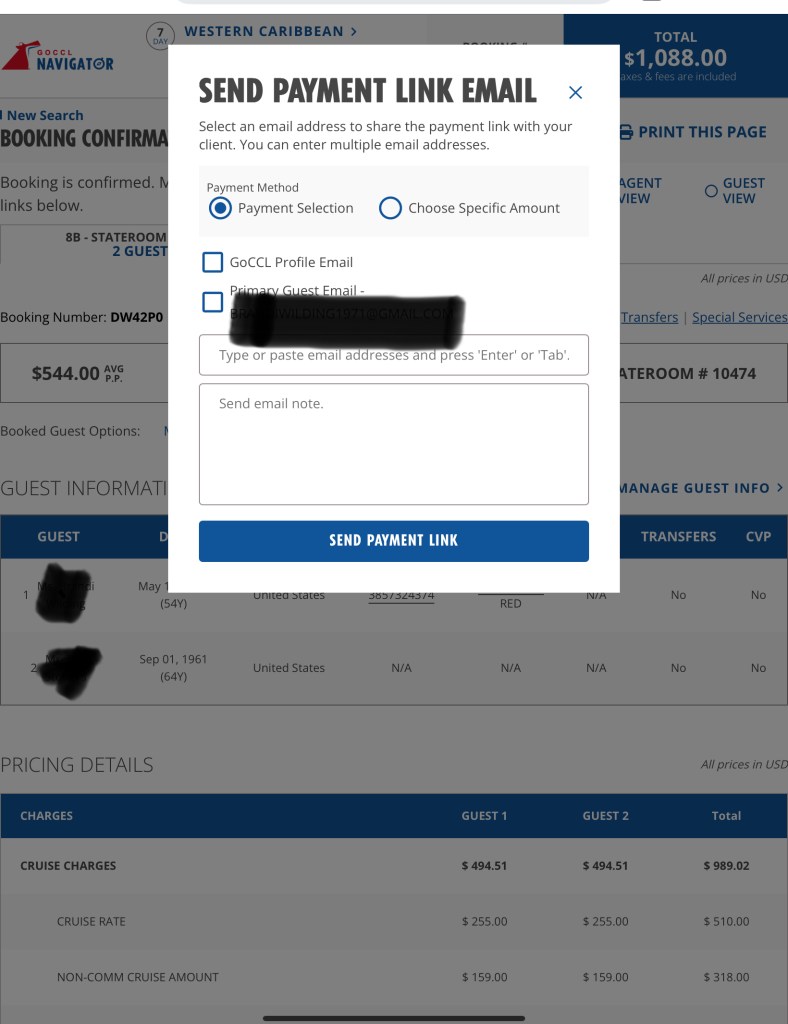 This method is designed to enhance client service and is also more secure than asking for card details directly. Travel advisors can use payment links to customize a specific payment amount. They can also allow clients to view their payment schedule. This also helps advisors manage upcoming payments due within 48 hours, as GoCCL.com now displays alerts for these payments.