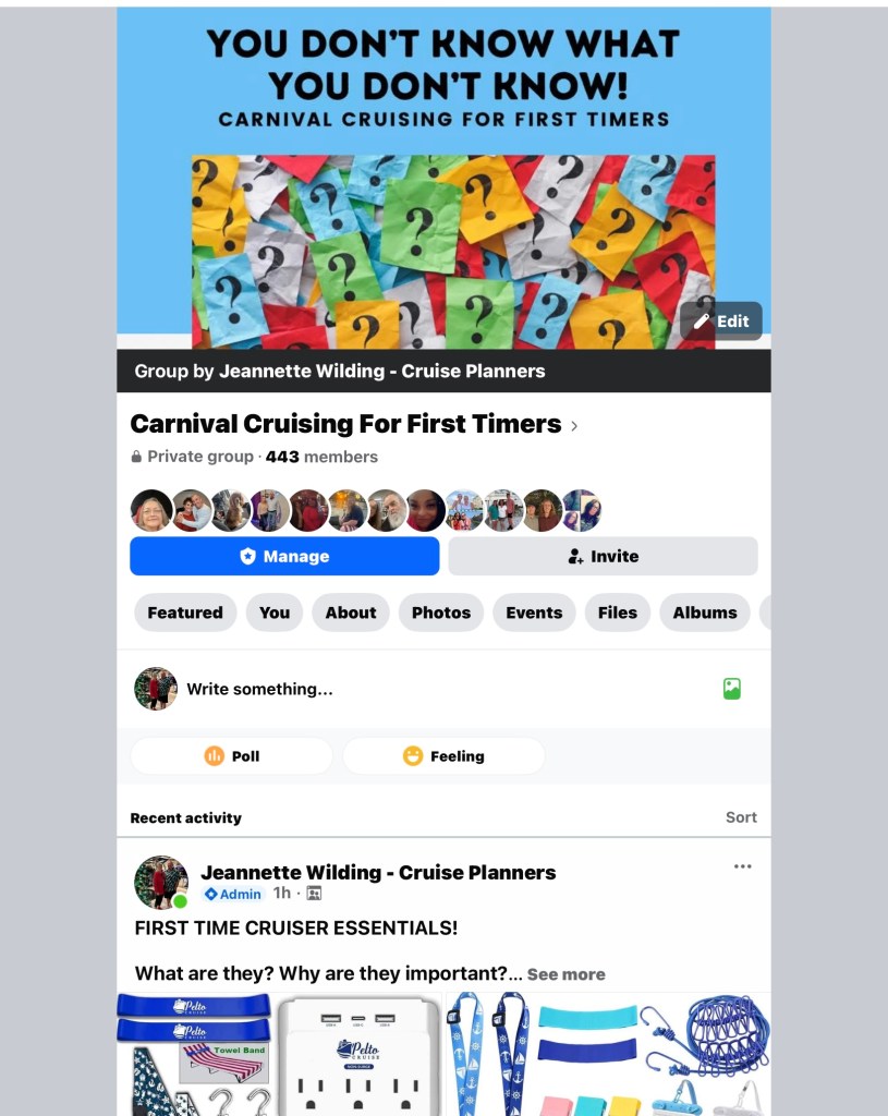 I have my own Facebook group just for first time cruisers.