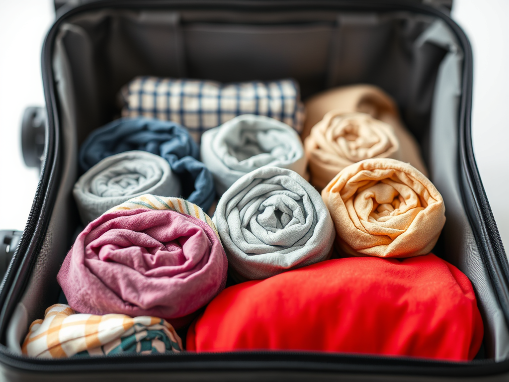 - Roll tightly into little bundles (great to tuck into shoes or corners of packing cubes).