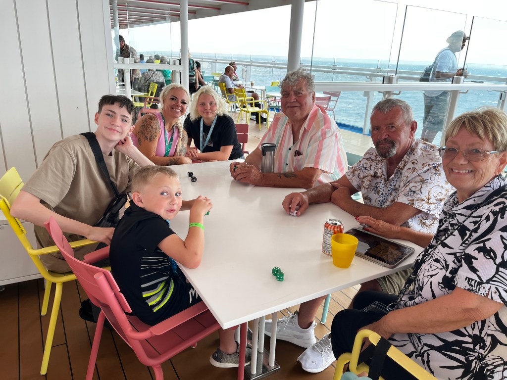We typically cruise with family or friends. Sea days gives us a chance to play games and hang out with each other. Each family usually brings a game we can all play. LCR is a big hit with the grandkids because we play for wrapped candies. Phase 10, Bank, Five Crowns, Farkle are enjoyed by everyone.