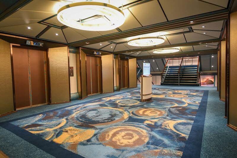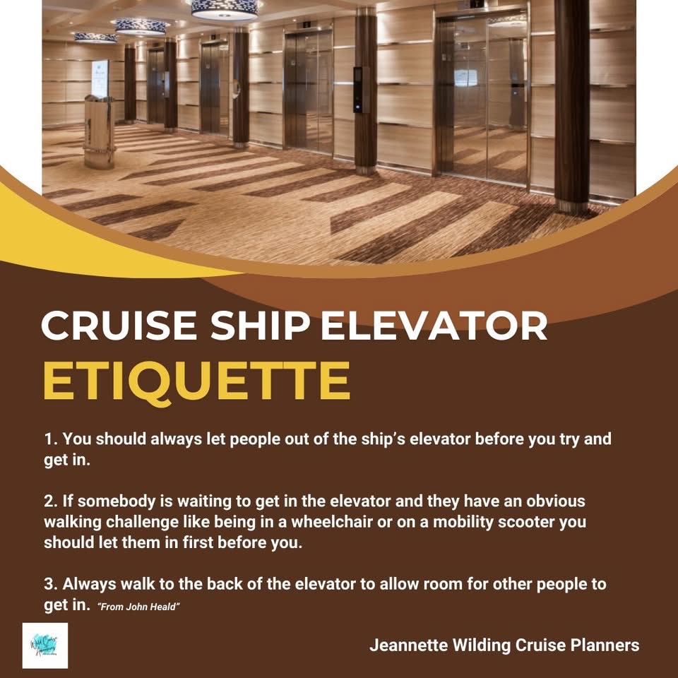 *During the cruise the midship elevators tend to be the busiest. Walk to the other banks that aren’t as busy.