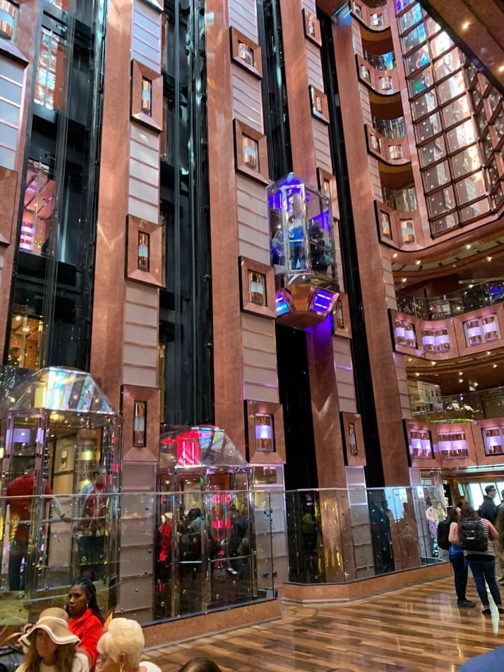 *On a few ships you’ll encounter the “smart” elevators. It seems like they are smarter than many guests. You just need to tap the deck you’re going to. It will show a letter of the elevator you need to use. If there’s three of you, tap your deck three times. There’s no buttons inside the elevator so don’t just jump on one and expect to get to your deck.